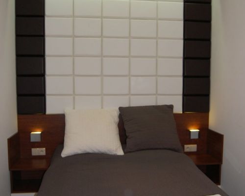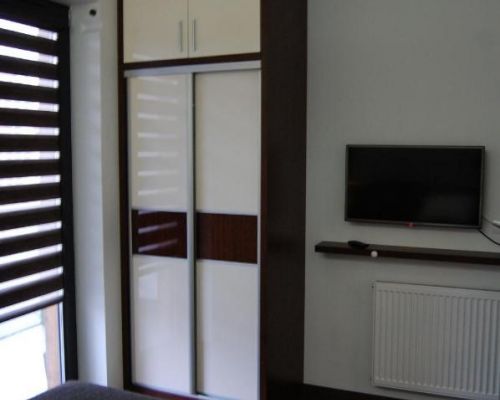 Jedno dwuosobowe łóżko o szerokości 140cm, szafa, szafki z lampką nocną+ TV LED
